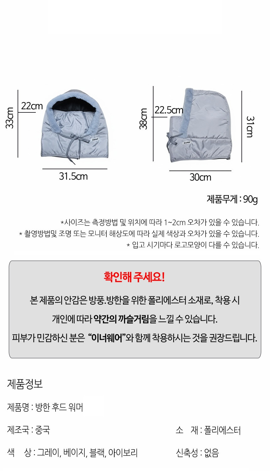 겨울 방한넥워머 목토시 커플 바라클라바 아이보리